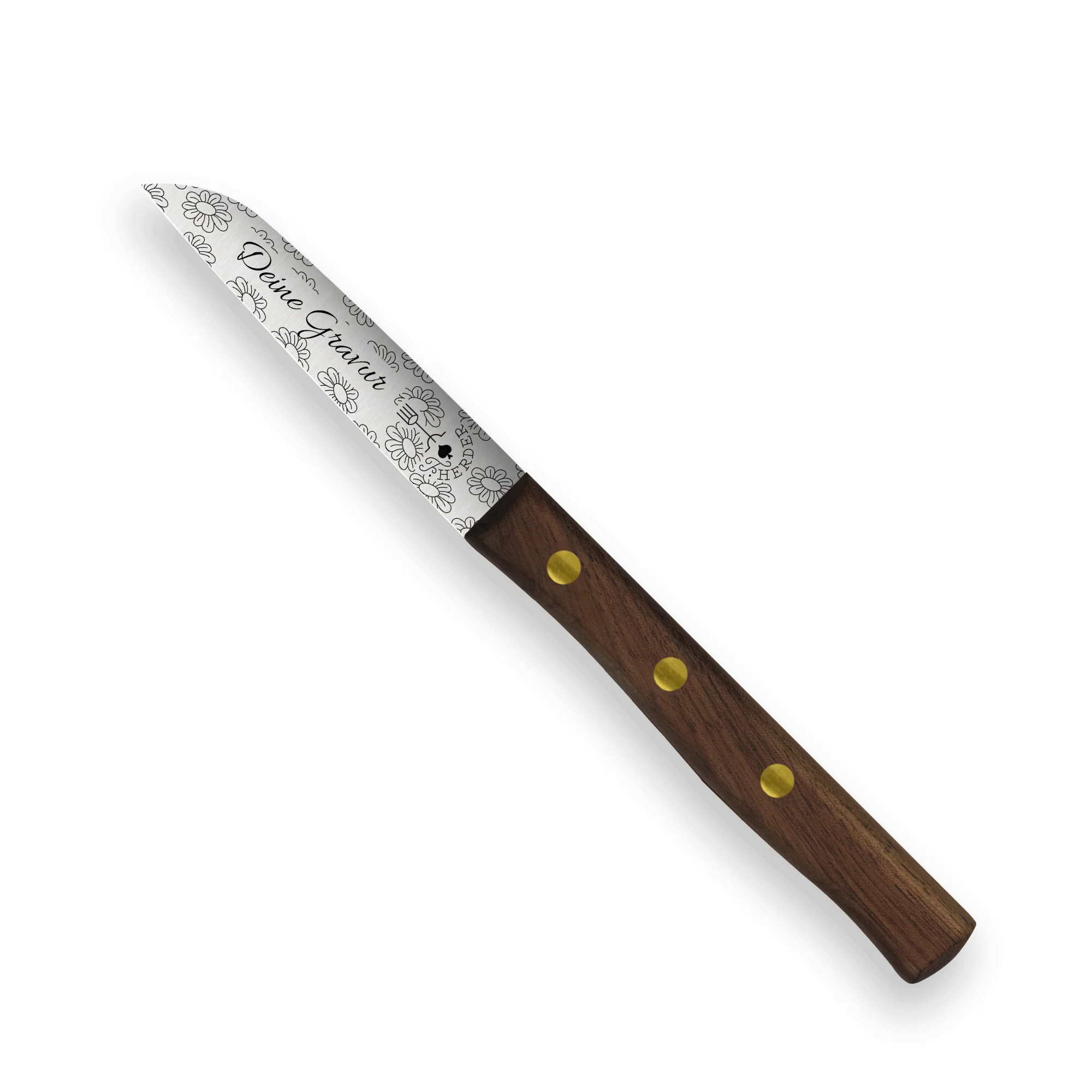 Für den besonderen Anlass kannst du das Messer mit einer persönlichen Gravur versehen und aus floralen Designs wählen – von dezenten Blumenranken bis hin zu detailreichen Mustern. So entsteht ein einzigartiges Geschenk, das nicht nur schneidet, sondern auch Eindruck hinterlässt.